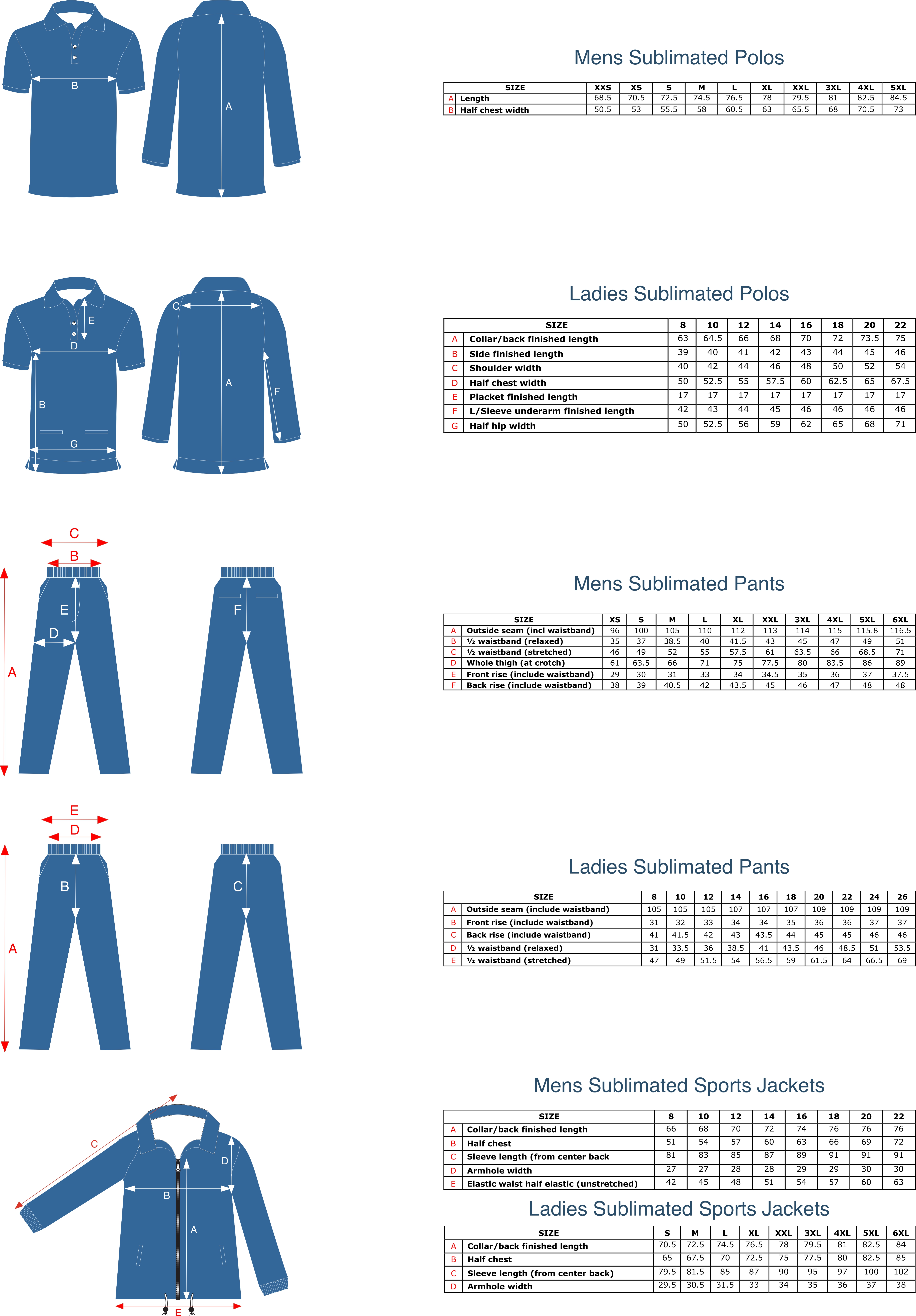 The following tables are measurements specifically for garments made in the U Design Factory. We will supply sizing charts for garments sourced or supplied through other specialised manufacturers or suppliers on request or where neccesary.